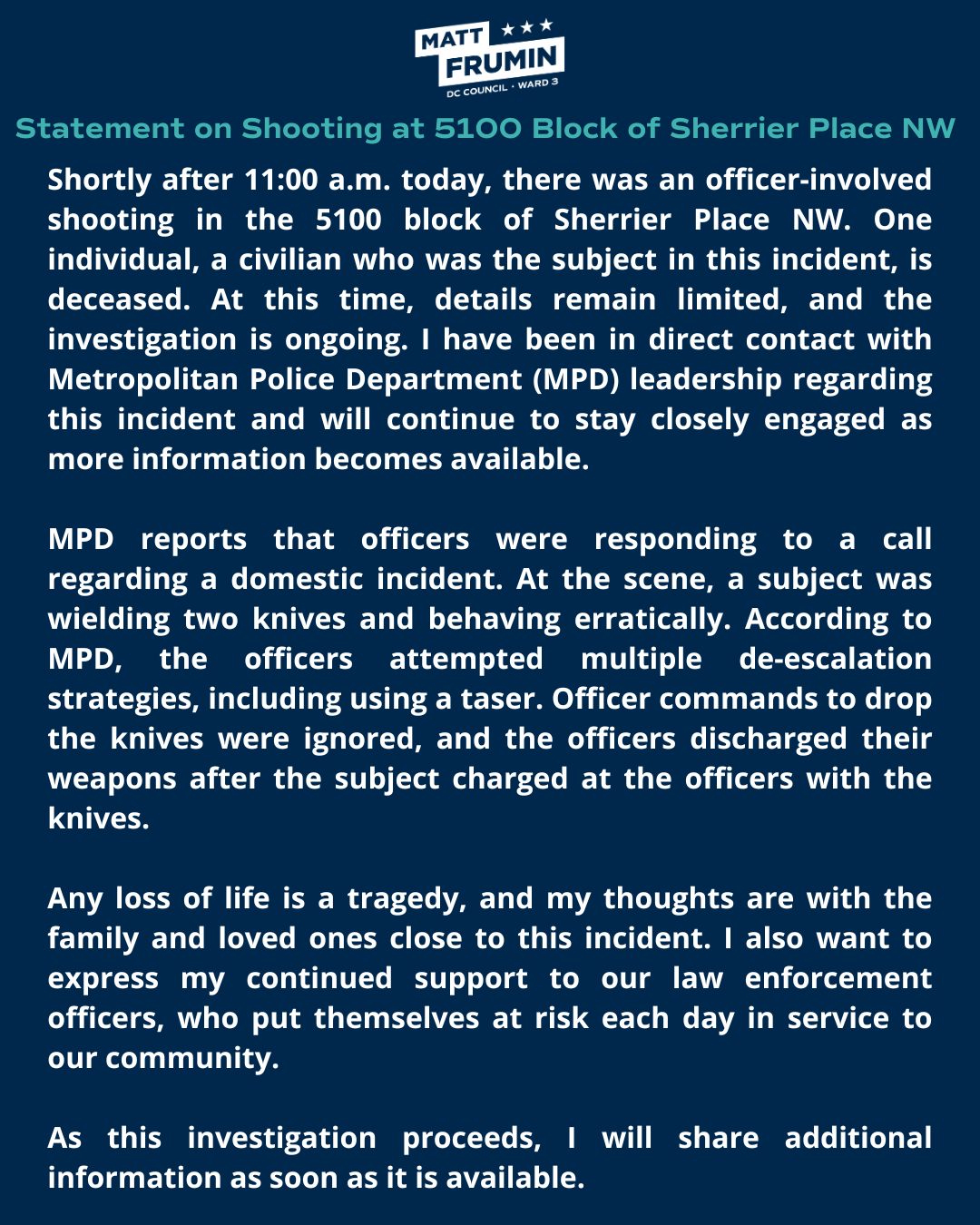 Councilmember Matt Frumin announced his budget priorities for Fiscal Year 2024, which he transmitted in a letter to Mayor Muriel Bowser. The ambitious priorities seek to realize a “Ward 3 for All” by expanding opportunity and growing inclusive neighborhoods.
